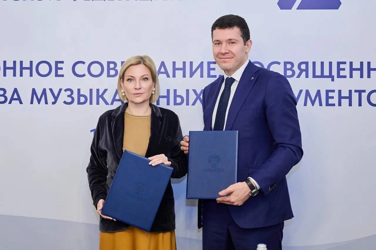 Министр культуры Российской Федерации Ольга Любимова и Министр промышленности и торговли Российской Федерации Антон Алиханов провели совещание по передаче музыкальных инструментов.