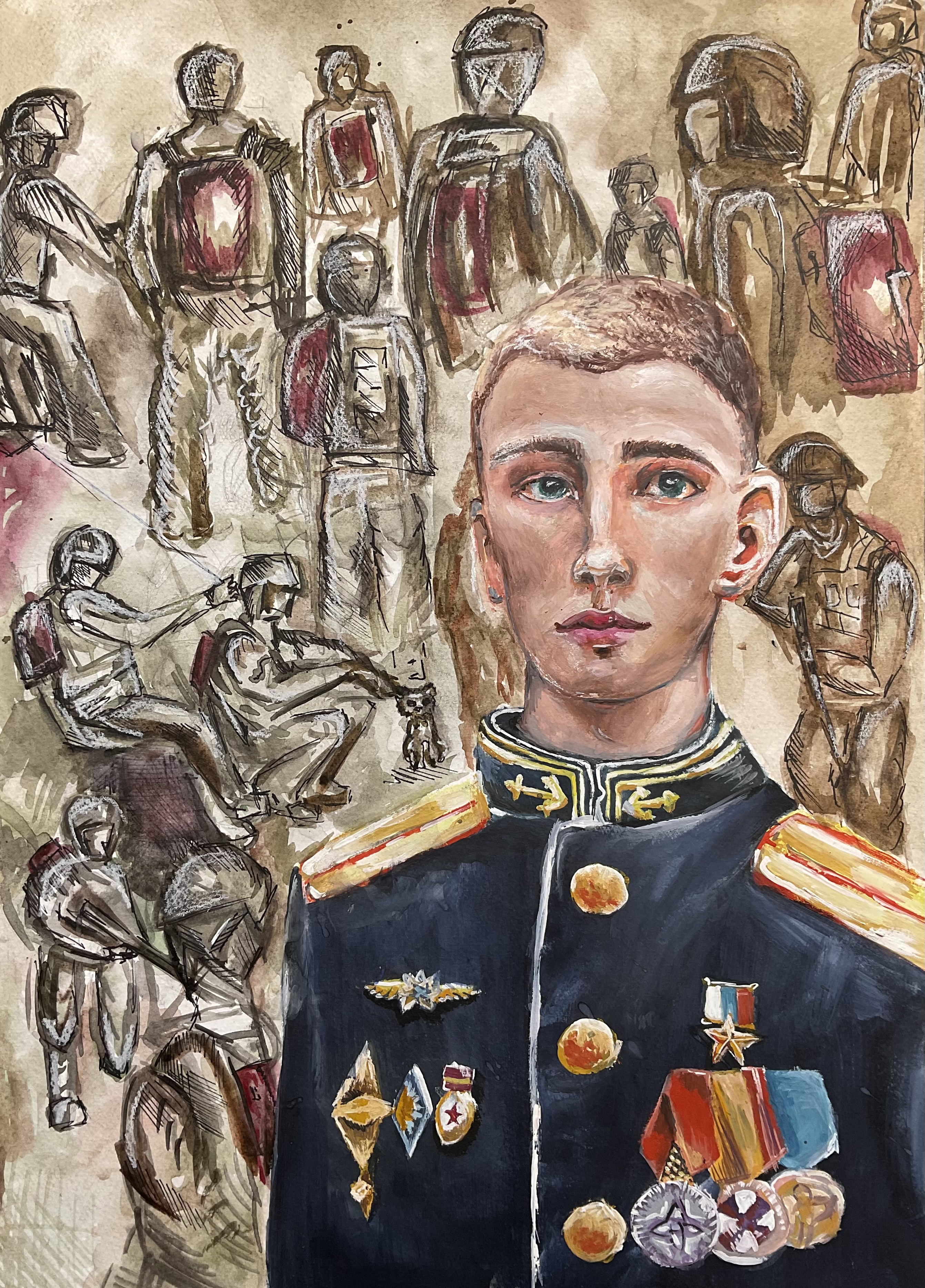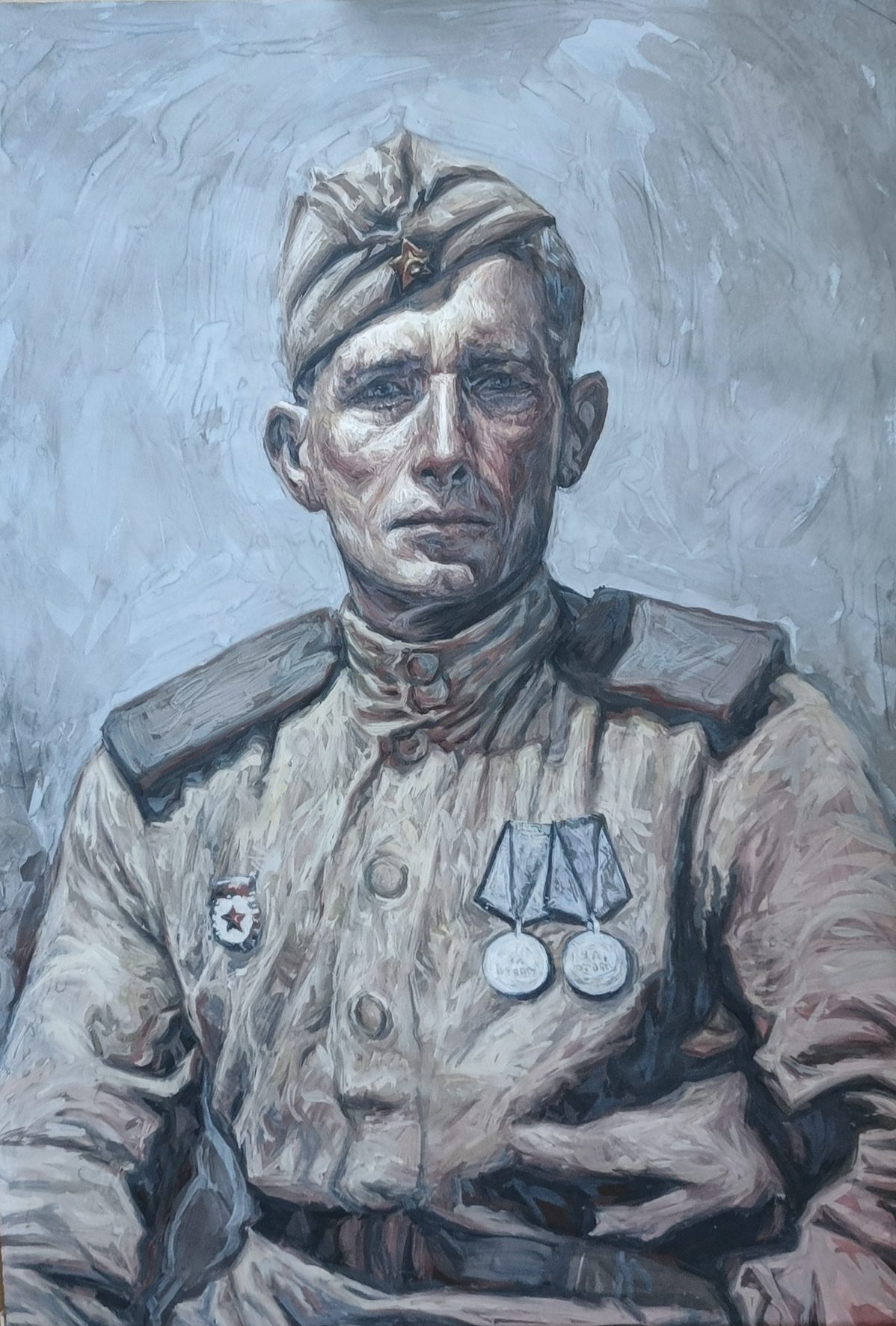 Портрет советского разведчика полного кавалера Ордена Славы Бородулина Ивана Алексеевича